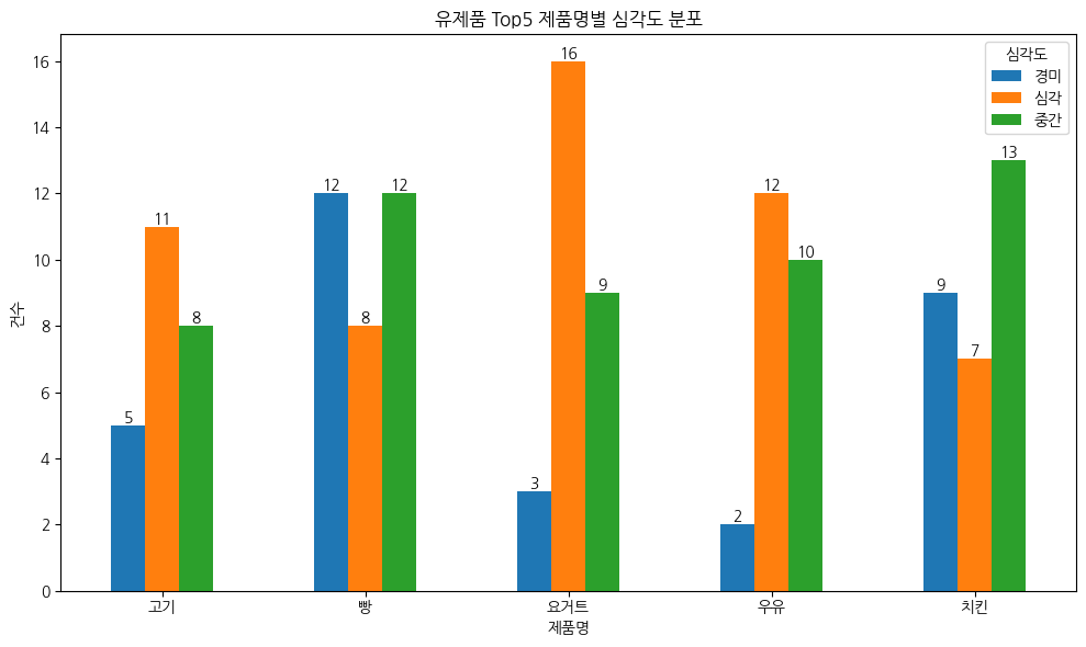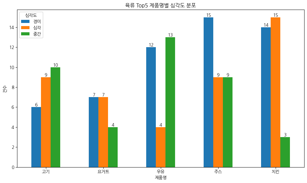 그렇다면 200건 넘은 카테고리인 육류, 유제품에서 어떠한 제품이 가장 문제가 많이 발생했는가?