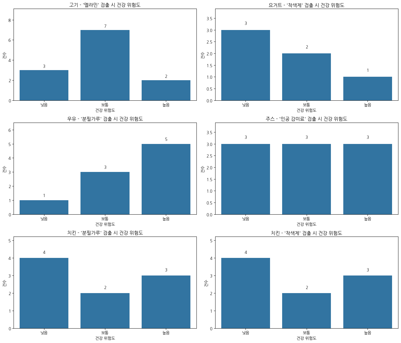 치킨 - 착색제: 건강 위험도 낮음이 다수 나타난다.