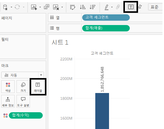 마크 레이블 표시를 통해 각 범주의 값을 시각화하여 같이 나타낼 수 있다.