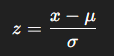 각 값을 평균(μ)=0, 표준편차(σ)=1로 변환하는 방식