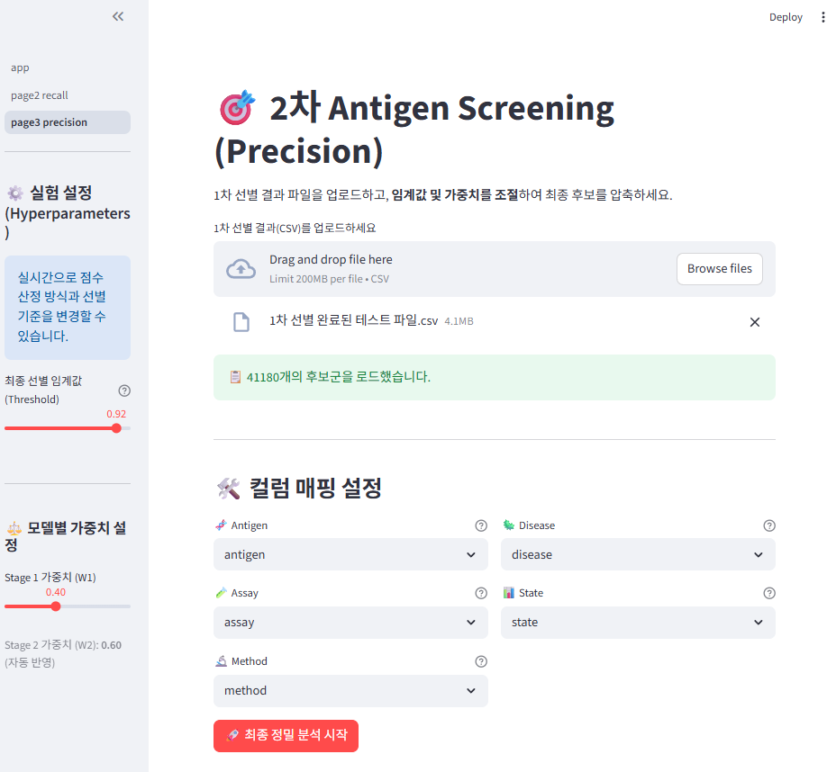1차 선별에는 임의로 정한 임계값을 통과한 것들만 살리고 2차 선별에서는 사용자가 추가로 실험을 진행할 수 있도록 최종 선별 임계값을 선택할 수 있도록 설정하여 최종 분석을 진행할 수 있도록 하였다.